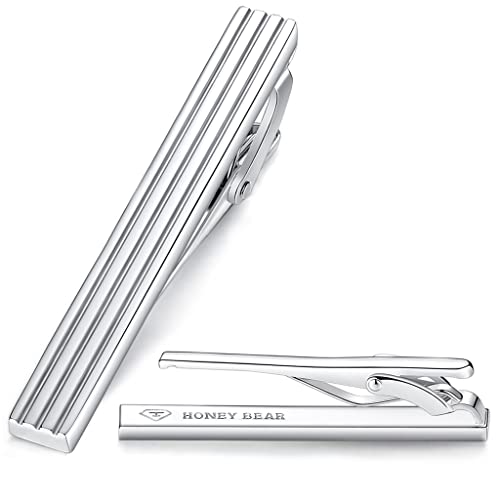 HONEY BEAR Fermacravatte Uomo Argento per Cravatta di Dimensioni Normali,Acciaio Inox, Ferma Cravatta per Regalo di Nozze d'Affari,5.4cm