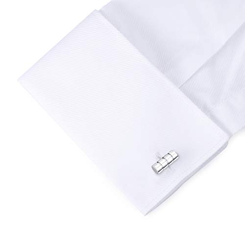 HONEY BEAR Gemelli per Uomo -Cilindro Acciaio Inox, per Camicia Il Matrimonio di Business Argento