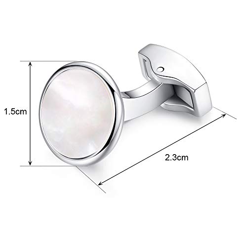 Honey Bear gemelli da polso uomo - conchiglia di mare bianco rotonda camicia acciaio per matrimonio Commercio Regalo Argento