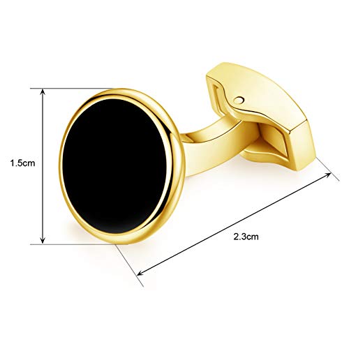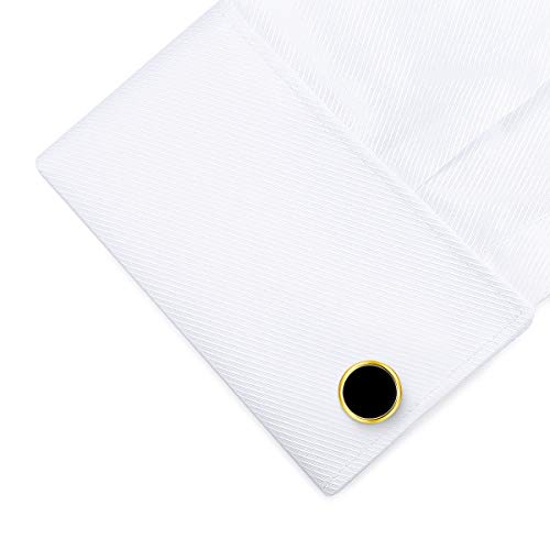 HONEY BEAR Gemelli da Polso Uomo - Conchiglia di Mare Bianco Rotonda/Agata Onice Nero Piazza Camicia Acciaio per Matrimonio Commercio Regalo (Oro con onice Nero)