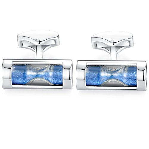 HONEY BEAR gemelli da polso uomo -Imbuto Timer Clessidra camicia acciaio per matrimonio Commercio Regalo (Blu)