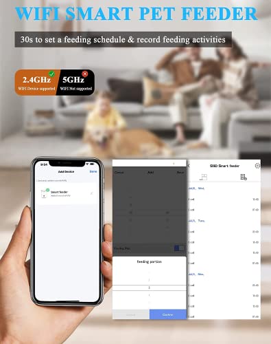 【Distributori Automatico Cibo Gatti WiFi con APP】Alimentatore automatico per gatti si collega in modo rapido e stabile alla rete a 2,4 GHz. Occorrono solo 30 secondi per impostare un programma di alimentazione sull'app, il che è molto più semplice rispetto all'utilizzo del modello a pulsanti. Puoi nutrire i tuoi animali domestici sempre e ovunque sul tuo smartphone e visualizzare il registro di alimentazione sull'app per assicurarti che le mangiatoia automatica gatti funzionino come programmato.