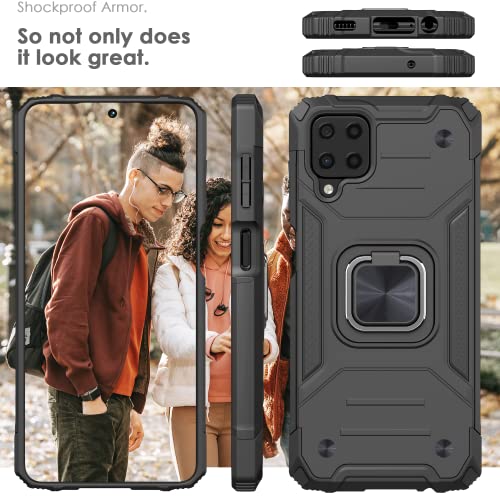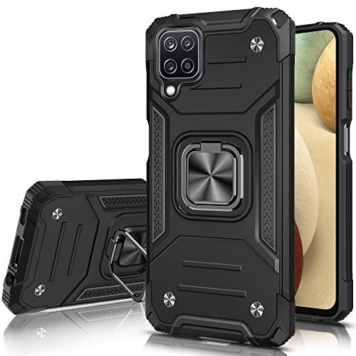 Honeyview Antiurto Cover per Samsung Galaxy A12 / M12 con 1 Pezzi Vetro Temperato, Grado Militare 360° Magnetica Anello Ring Supporto TPU Bumper Case for Samsung A12 / M12, Nero