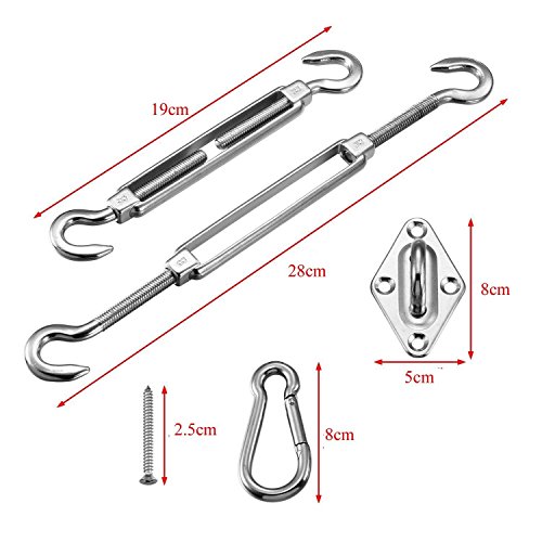 Il kit è realizzato in acciaio inossidabile 304 di alta qualità e contiene quattro elementi.I nostri fissaggi per vela per ombra per impieghi gravosi sono le dimensioni M8 più forti mentre la maggior parte sul mercato è M5 o M6.