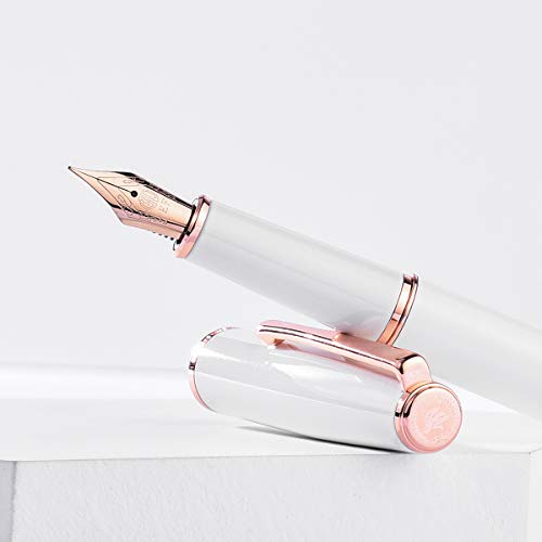 Hongdian 920 - Penna stilografica con pennino extra fine, colore bianco, con scatola in metallo placcato oro rosa