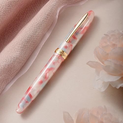 Design elegante: la forma a siluro e il design in acrilico traslucido offrono un'esperienza visiva fresca, e ogni penna è unica. L'anello in metallo sul cappuccio è placcato in oro attraverso gioielli, riflettendo il gusto unico e il lusso leggero.