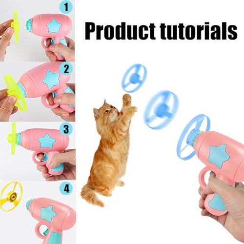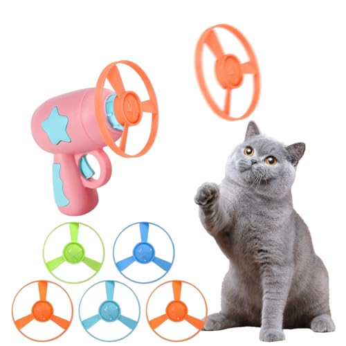 HONGECB Giocattoli Interattivi per Gatti, Cat Fetch Toy, Eliche Volanti Colorate Giocattolo, Spinning Shooter Giocattoli Volante, con 1 Lanciatore e 5 Dischi, Regali per Caccia Allenamento