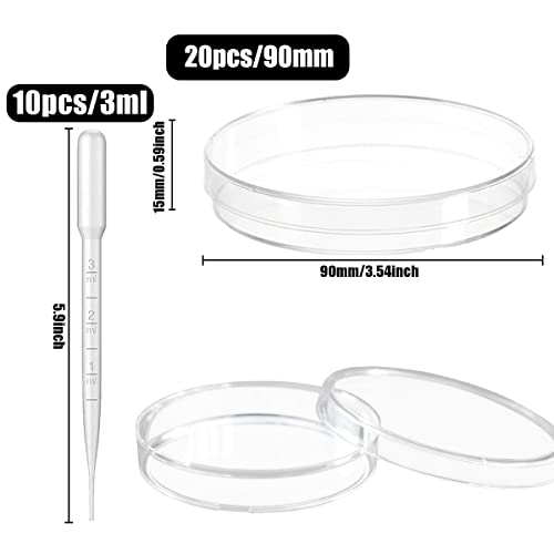 CONFEZIONE - Riceverai 20 capsule di Petri con coperchi e 10 pipette usa e getta da 3 ml. Questa è una capsula di Petri sterile che non contiene agar e può resistere a una temperatura elevata di 80 gradi.