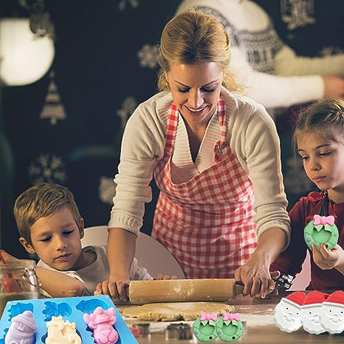 CONFEZIONE: 3 Stampi Natalizi In Silicone (Rosso + Verde + Blu), Inclusi Alci, Calzini, Campane, Regali, Pupazzo Di Neve, Slitta, Babbo Natale, Campane.