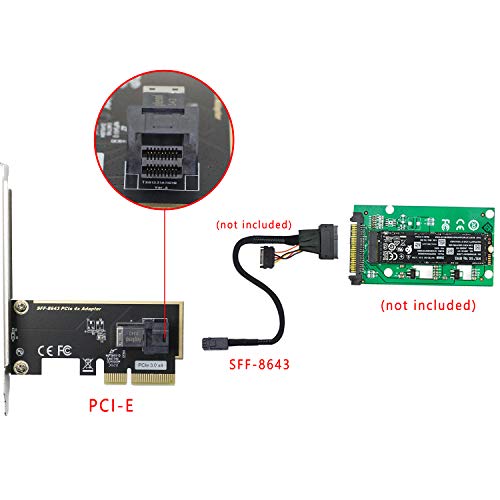 ✪SFF 8643 a PCIe 4X Adapter converte l'interfaccia PCIe sulla scheda madre in un U.2 o collegare le alte prestazioni NVMe U da 2,5 pollici. 2 (SFF-8639) SSD alla scheda madre del computer.È possibile aggiungere un SSD PCIe NVMe da 2,5" a un sistema informatico che non supporta U.2 PCIe NVMe.