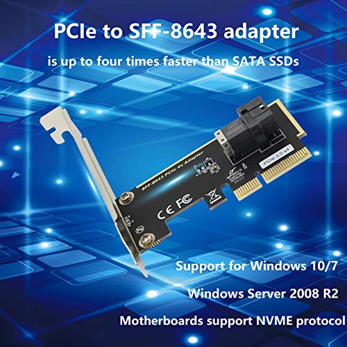 Adattatore PCI Express da x4 a U.2 SFF-8643, nessun driver richiesto, funziona perfettamente per il sistema operativo. Supporto per Windows 10/7, Windows Server 2008 R2.