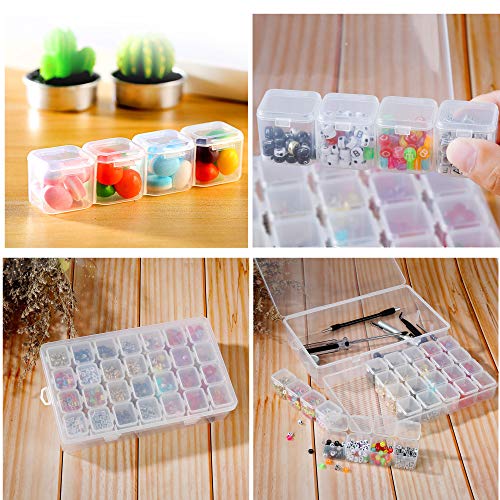 HONGXIN-SHOP Scatola Stoccaggio Removibile Contenitore Immagazzinaggio Trasparente Plastica Diamante Ricamo Scatola Organizer per Nail Art Strass Pillola Perlina 28 Griglie