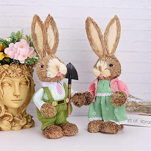 HONGXW Coniglio di paglia di Pasqua, coniglio di paglia in piedi, coniglietto di paglia di simulazione pasquale, ornamenti artificiali per la casa, ornamento per la casa di festival