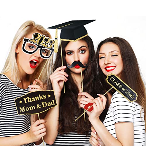 Hongyans Foto Booth di Laurea 2023 Photo Booth di Laurea Photobooth Selfie Kit Divertente Baffi Occhiali Cappelli Cravatte Labbra per Festa di Laurea Matrimonio Compleanno Decorazioni