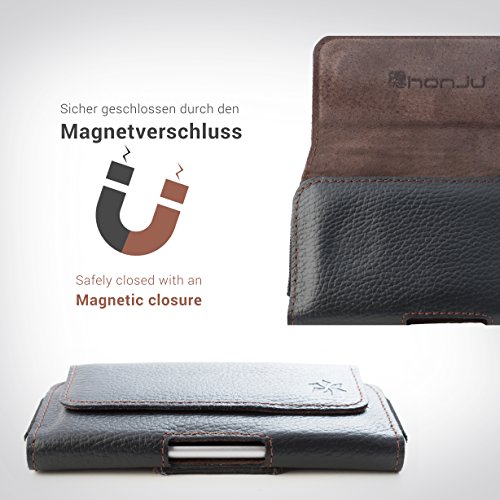 Con il grande passante per cintura (circa 5,5cm) è possibile fissare la custodia a quasi tutte le cinture. Una grande patta con chiusura magnetica protegge il tuo telefono da perdersi.
