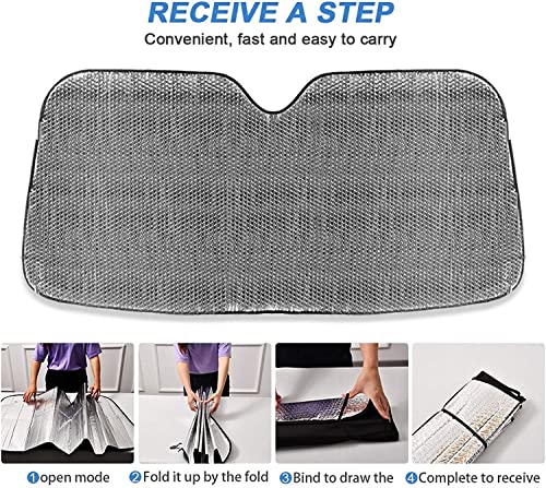 Facile installazione: il parasole per parabrezza dell'auto può essere facilmente installato con facilità senza bisogno di attrezzi. È possibile posizionare la visiera parasole e abbassare la visiera parasole sopraelevata che può sostenere il parabrezza. È anche possibile piegare il parasole per auto con facilità!