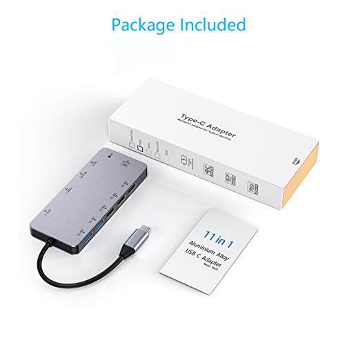 Honmax Hub Usb C 11 In 1 Adattatore Usb Tipo C, 2 * Usb 3.0, 4K Hdmi, 2 * Usb-C, 3 * Usb 2.0, 3 * Sd / Micro Card Reader, Per Macbook Pro 2015/2016/2017, Samsung Galaxy S8, Grigio
