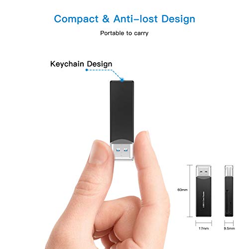Design di sicurezza: il design del portachiavi evita che il lettore di schede si perda È un buon prodotto per viaggi e viaggi d'affari. Il lettore di schede USB 3.0 ha un coperchio che protegge le prese USB da polvere e sporco.