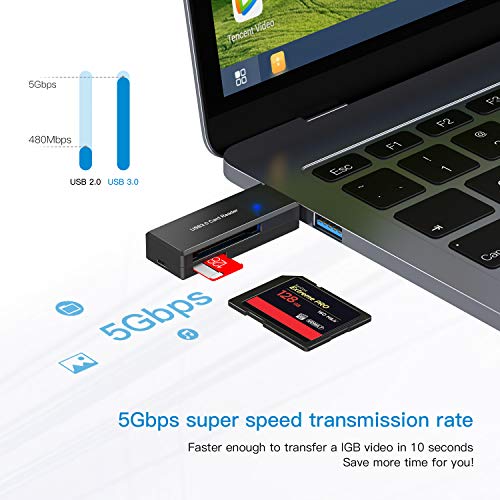 Supporta schede fino a 512 GB: lettore schede SD USB 3.0 supporta schede fino a 512 G e consente un trasferimento dati super veloce fino a 5 Gbps - 10 volte più veloce di USB 2.0 (480 Mbps), consentendo di trasferire film o file HD in pochi secondi.