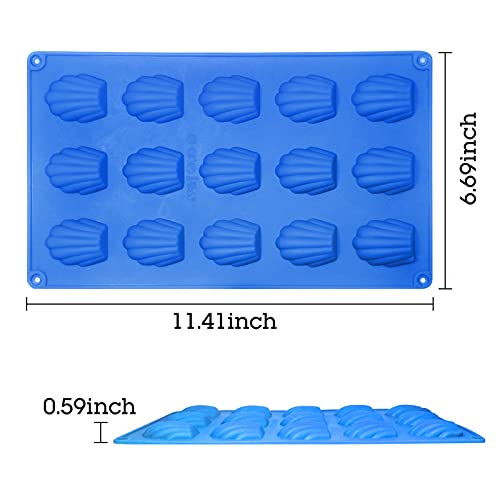 Honnesserry Madeleine Stampo antiaderente in silicone a forma di conchiglia Teglia da forno fai da te Madeleine 15 cavità blu (confezione da 2)