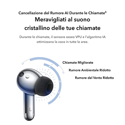 【Cancellazione del rumore adattiva】Riconosce automaticamente lo scenario e adatta in modo intelligente la modalità ANC, supportando una profondità di cancellazione del rumore di 46 dB. Durante le chiamate, il sensore osseo VPU e l'algoritmo AI ottimizzano la voce in tutte le aree