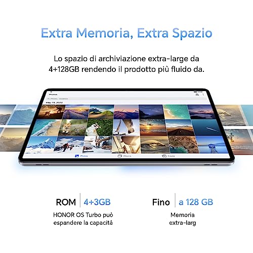 【Ampio spazio di archiviazione e lunga durata della batteria】Con una generosa capacità di archiviazione di 128GB, Honor tablet Pad X9 offre molto spazio per memorizzare tutti i file, le foto e i video. Inoltre, la batteria integrata da 7250mAh garantisce un'autonomia prolungata, consentendo di utilizzare il tablet per periodi più lunghi senza preoccuparsi di rimanere a corto di energia.