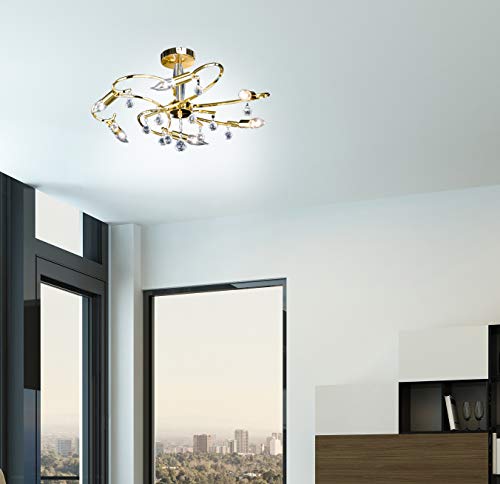 Honsel Leuchten 26196 Sala - Lampada a soffitto a 6 punti luce, eco alogena E14 6x28 W, ø 62 x 34 cm, ottone lucidato e vetro