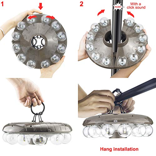 [Facile da installare] - Morsetto robusto integrato autoregolante, facile da installare, basta agganciarlo all'ombrello, può anche essere facilmente appeso ovunque con due ganci. Montato su asta, misura palo da 1,1 a 4,5 cm di diametro. Adatto per l'uso esterno di notte, tenda da campeggio, tempo libero notturno, decorazione per feste, per creare atmosfere, piscina, giardino, mare, barbecue, balconi, seduti sotto l'ombrello o sdraiati sulla sedia per il tempo libero per usare computer, lettura, giochi, ecc.