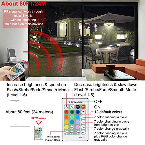 [Telecomando RF 80FT attraverso pareti con timer e immersione] - Ogni telecomando RF può controllare la luce a 24,4 m di distanza massima, può funzionare attraverso vetro e pareti, e può anche memorizzare l'ultima luminosità e lo stato del colore quando si accende nuovamente dal telecomando. Utilizzando il telecomando per controllare la luminosità e impostare il tempo a 1/2/3/4 ore.