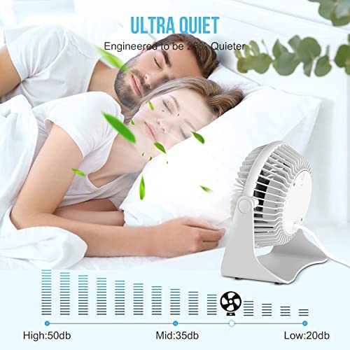 Velocità regolabile / Funzionamento silenzioso - Per soddisfare le tue esigenze, il mini ventilatore usb dispone di 3 velocità per un flusso d'aria e un comfort ottimali. Il design della struttura silenziosa è del 25% più silenzioso rispetto ad altri ventilatori da tavolo, la brezza silenziosa e delicata offre un buon sonno per il bambino.