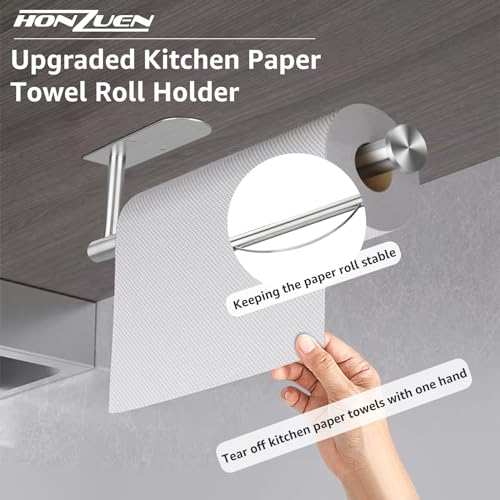 HONZUEN Autoadesivo Portarotolo Cucina Sottopensile,Strappare la Carta Velina con Una Mano, Porta Rotolo da Cucina da Parete Acciaio Inossidabile, Portarotoli Cucina Senza Forature per Cucina e Bagno