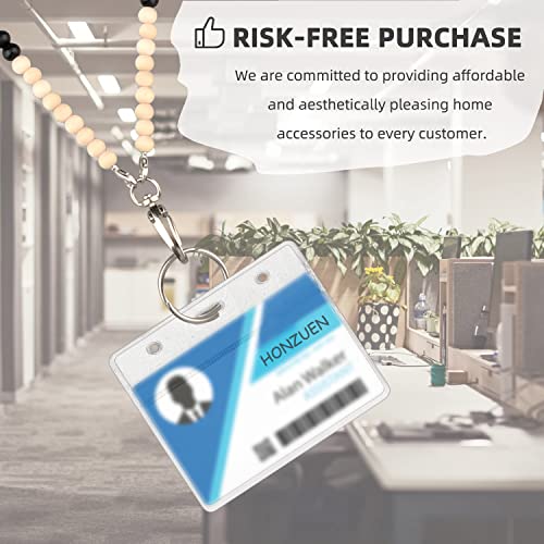 HONZUEN Perline di legno cordino lungo, Laccio da Collo Cordino con Porta Carte e Anello Per Occhiali, per ID Carta di Identità, Porta Badge, Chiavi, Occhiali (Nero Bianco)