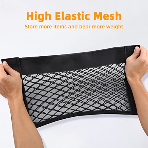HONZUEN 2 Pezzi Rete Bagagliaio Auto,Rete Portaoggetti Tasca Oganizer con Velcro,Elastica Tasca Protettivo Mesh Net per Universale per SUV,Truck di Auto(28 x 45cm)