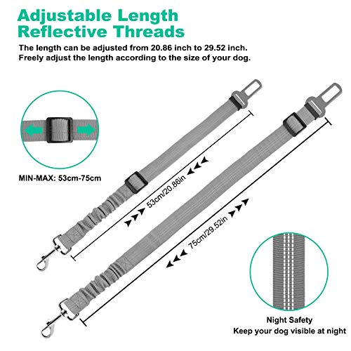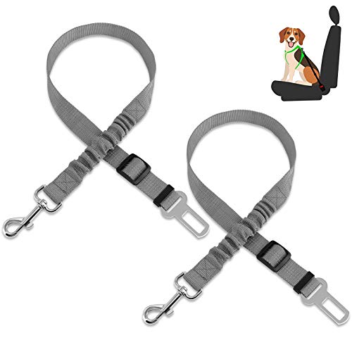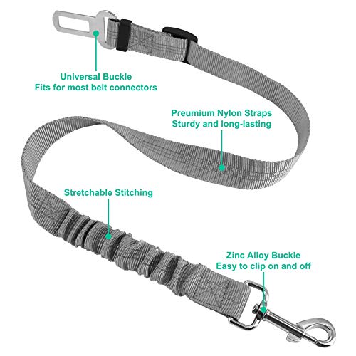 HONZUEN 2 Pezzi Cintura di Sicurezza per Cani Universale, Cintura Auto per Cani con Ammortizzazione Elastica e Forte Moschettone, Regolabile Durevole Dog Seat Belt per Tutte Razze di Cani(Grigio)