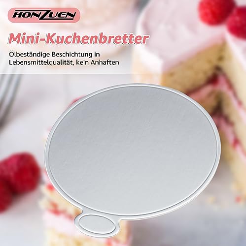 HONZUEN 100 Pezzi Mini Vassoi per Torte Rotondi, Tavole Rotonde per Mousse, USA e Getta Basi di Cartone per Torta, Cake Dessert Display Vassoio per Nozze Compleanno Partito(circa 8 cm) (d'argento)
