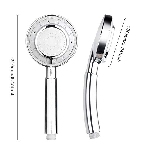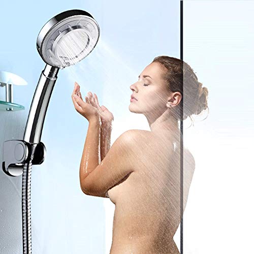 HONZUEN Soffione Doccia Alta Pressione a mano, 40% di Risparmio Idrico, con 1.5M G1/2 Tubo Flessibile, Universale, a 3 Funzioni, Massaggio