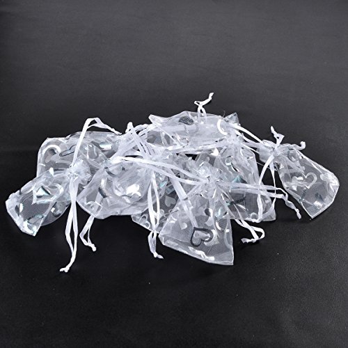 HooAMI - Sacchetti regalo in organza, a forma di cuore, 100 pezzi, 7 x 9 cm