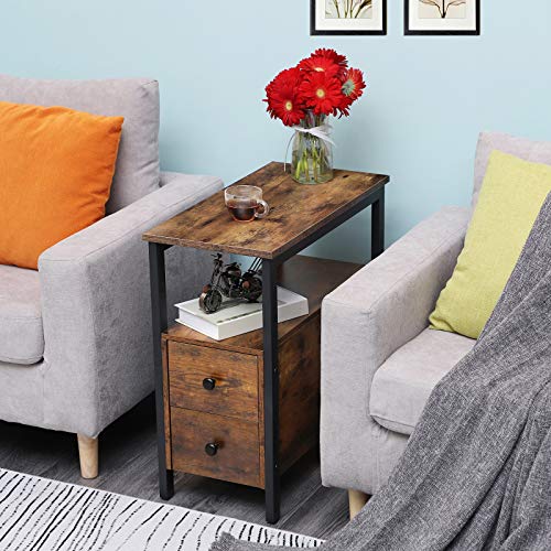 HOOBRO Comodino, Tavolino Stretto con 2 Cassetti e 1 Ripiano Aperto, Comodino per Spazio Piccolo, Tavolino da Divano Stretto, Struttura Stabile, Marrone Vintage EBF548BZ01G2