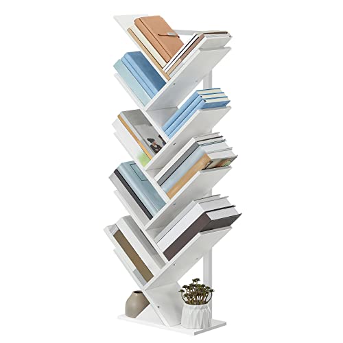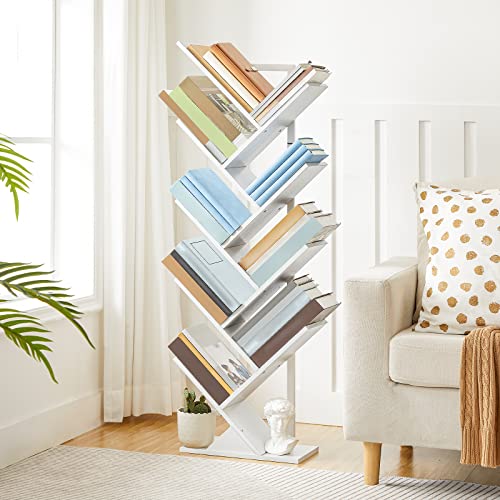 HOOBRO Libreria a Forma di Albero, Scaffale ad Albero, Portaoggetti a 9 Ripiani, Mobile da Studio, per Libri, CD, Stabile e Resistente, in Soggiorno, Ufficio, Bianco EWT08SJ01G1
