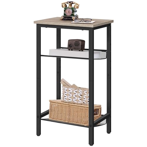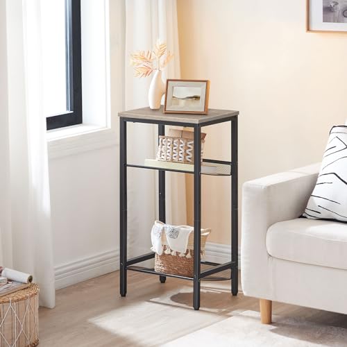 HOOBRO Tavolino Lato Divano, Comodino con 2 Ripiani in Rete Regolabile, Tavolino Porta Telefono con Portaoggetti, Stile Industriale, per Ufficio, Corridoio, Soggiorno, Greige e Nero EBG01DH01G1