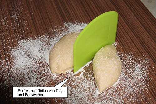 Set da 2 pezzi (12 x 9,5 cm, 4 mm di spessore). Dalla collezione 2018/2019 nel colore verde neon, attira subito l'attenzione su qualsiasi superficie del tavolo - niente più cercare il raschietto per impastare.