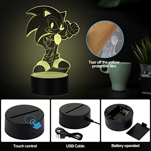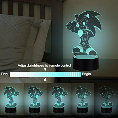 HooJtny Sonic Lampada Bambini, Sonic 3D Led Lampada, Luce Notturna, 16 Colori USB Ricaricabile, Decorazione, Regalo per Ragazzo Bambini