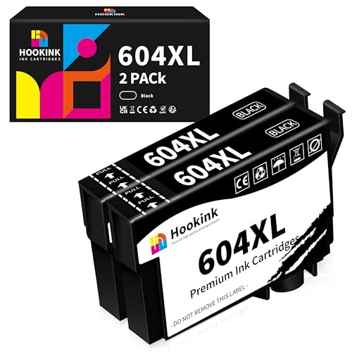 Hookink 604XL Nero Compatibili per Cartucce Epson 604 Nero per Expression Home XP-2200 XP-2205 XP-3200 XP-3205 XP-4200 XP-4205, Workforce WF-2910DWF WF-2950DWF WF-2935DWF WF-2930DWF (Nero,2-Pack)