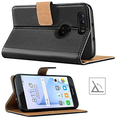 HOOMIL Cover per Honor 8, Flip Case in Pelle PU Premium Custodia per Huawei Honor 8 - Nero