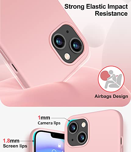 Protezione integrale - La morbida custodia del telefono con design a tre strati avvolge perfettamente il vostro iPhone 13. L'esterno in silicone liquido e la fodera in microfibra che assorbe gli urti sono progettati per rafforzare la protezione, la forte resistenza agli urti e l'elevata resilienza, per un efficace effetto anti-caduta, anti-scivolo e anti-usura. Progettato con labbra rialzate di 1,4 mm sopra lo schermo, salva il vostro iPhone dalle cadute.