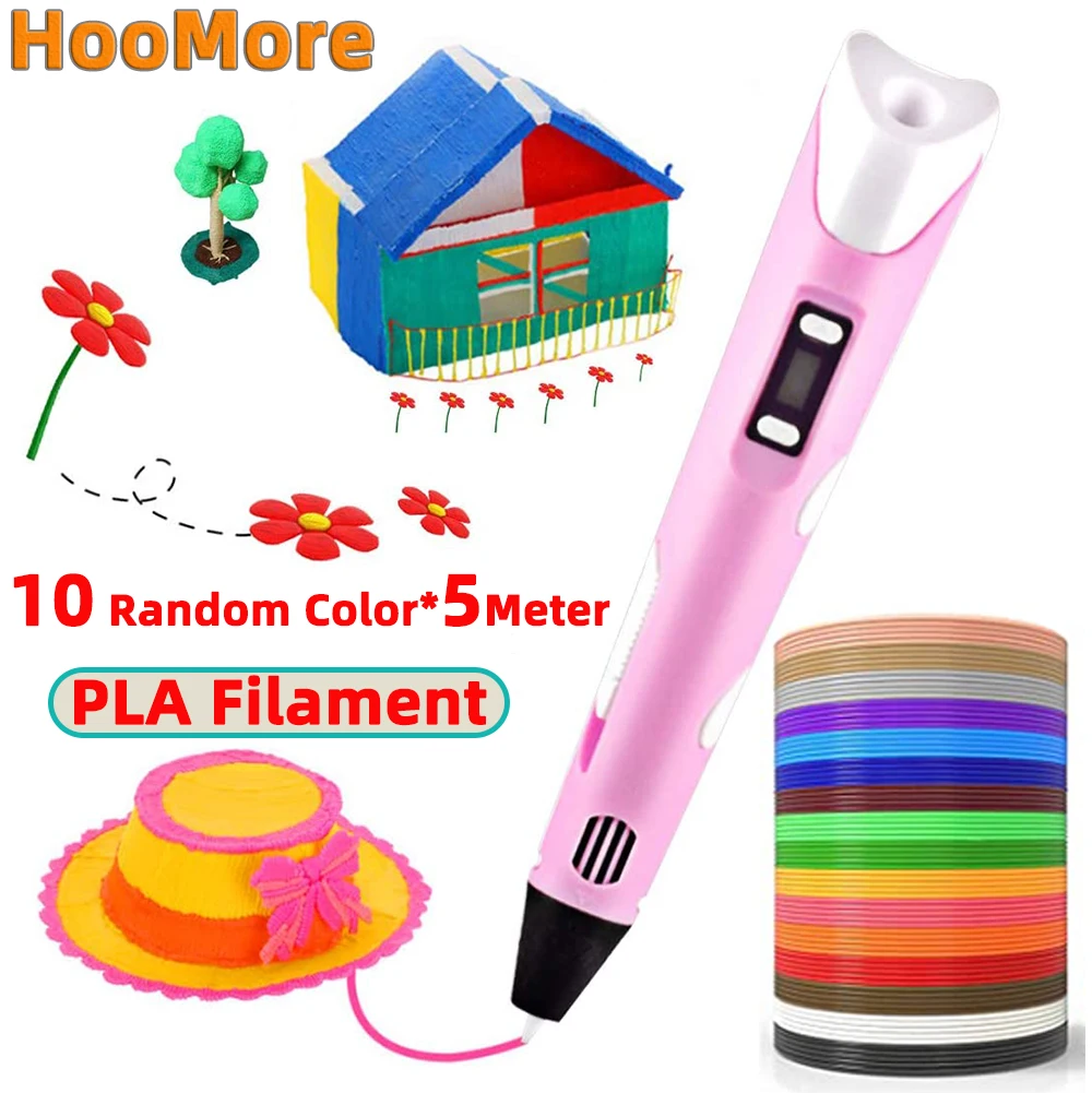 HooMore 3D Pen for Children DIY Drawing Printing Pencil with LCD Screen Compatible PLA Filament Toys for Kids Christmas Birthday
