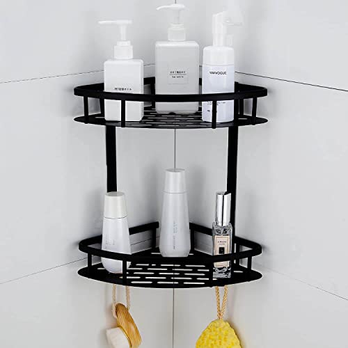 Hoomtaook Mensola Doccia Portaoggetti da Doccia Bagno, Metallo Mensola per Doccia Nessuna Foratura Montato A Muro 2 Livelli Nero
