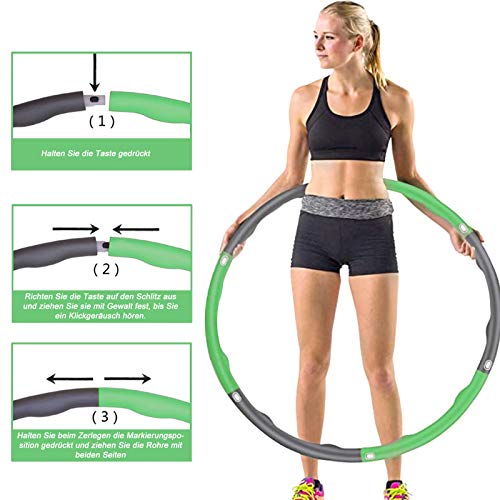 Regolabile in modo intelligente, adatto per diverse persone: 8 sezioni dell'Hula Hoop K possono essere regolate a piacere in base alle diverse forme K e età (6 sezioni del 73 cm: adatto per bambini e figlia. 7 sezioni da 84 cm: adatto per persone sotto i 50 kg di mamma e nonna. 8 sezioni della vita sottile 95 cm: Adatto per persone superiori a 50 kg di papà e nonno. ) Anche se lo si utilizza bene.