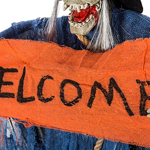 Hanging horror Skeleton Prop Haunted fantasma spaventoso controllo audio con scritta "Welcome illuminano gli occhi Halloween decorazione
