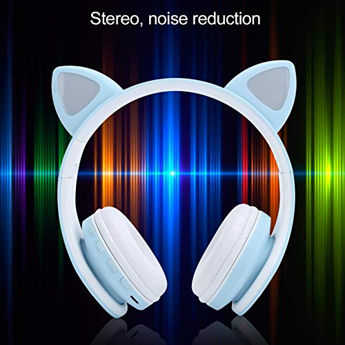 Hopcd per Cuffie Bluetooth 5.0, Cuffie LED con Orecchio di Gatto con Spina da 3,5 mm/Microfono/Stereo/riduzione del Rumore per chiamate/Musica/Bambini/Adulti